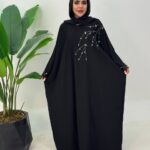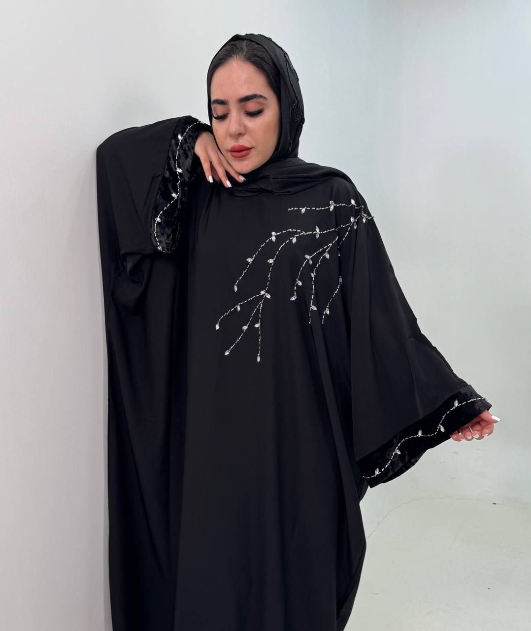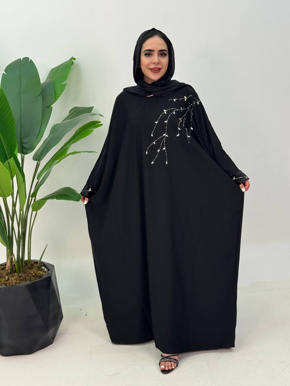 مانتو عبایی اماراتی شاخه مروارید نقره ای